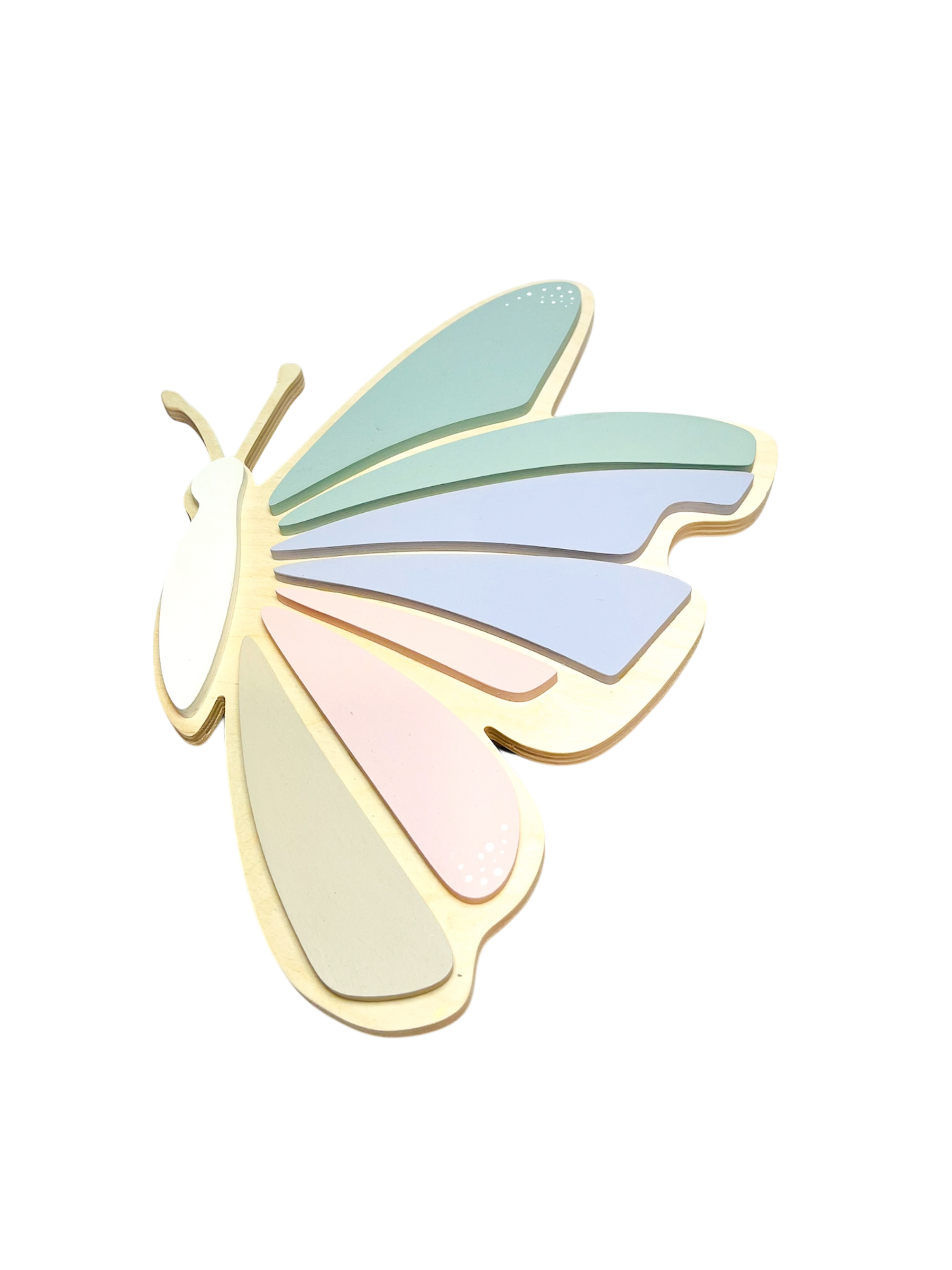 Pastelowa lampka LED to naturalna drewniana nocna lampka, w kształcie motyla do pokoju dziecięcego. Pomaga w usypianiu i czytaniu książki. Idealna jako lampka nocna LED do pokoju dziecięcego, oferuje subtelne światło, zainstalowany ściemniacz pozwala zmienić jasność świecenia. Możliwość dokupienia pilota lub spersonalizowania lampki imieniem dziecka.